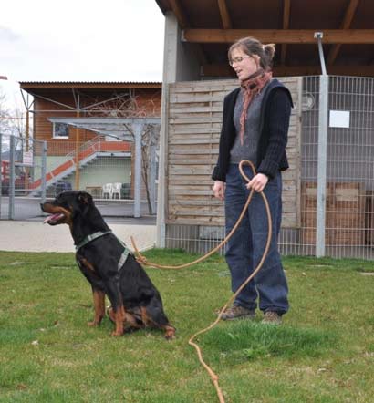 An sich läuft sie brav an der Leine, zeigt sich bei Begegnungen mit Hündinnen jedoch von ihrer rüpelhaften Seite.