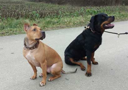 Die Spaziergänge mit ihr sind die reinste Entspannung für mich, da sie so brav, ruhig und souverän mit einem durch die Gegend streift. Sie lässt sich weder von Joggern, Passanten oder Fahrradfahrern aus der Ruhe bringen. Es gibt nur eins, bei dem Taya dann doch die Fassung verliert... und da sind wir auch schon bei ihrem einzigen Problem: Sie mag keine anderen Tiere! Wenn wir beim Spazierengehen einen Artgenossen treffen, baut sich Taya auf, springt vor und knurrt. Wenn man sie jedoch gleich korrigiert, hört sie sofort auf und läuft wieder brav weiter. Mit etwas Training, hat man dieses Problem im Nu aus der Welt geschafft. Da Taya während ihres ersten Tierheimaufenthaltes mit Rüden verträglich war, haben wir nun versucht, sie wieder mit einigen Rüden zu vergesellschaften. Leider endete es jedes mal in einem Angriff. Taya kann deshalb leider nur als Einzelhund gehalten werden.