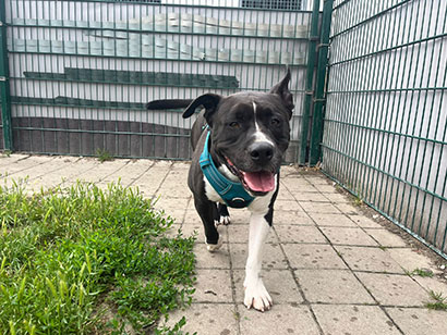 Tayson könnte auch mit einer hundeerfahrenen Katze zusammenleben und ist mit Hündinnen verträglich!