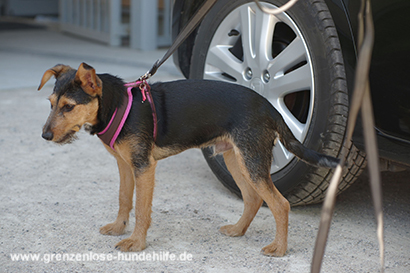 Der anfangs zurückhaltende aber sehr verspielte kleine Rüde benötigt Menschen die ihm das gesamte Hunde-einmal-eins beibringen.