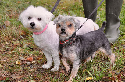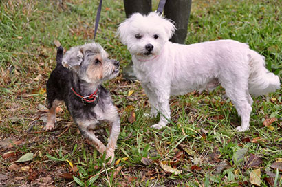 Der Yorki Teddy orientiert sich im Allgemeinen und vor allem beim Gassigehen völlig an Tobby und ist stets an seiner Seite.