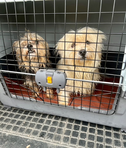 Die Besitzerin der beiden Rüden ist verstorben und konnte sich wohl schon einige Zeit vorher nicht mehr richtig um sie kümmern.