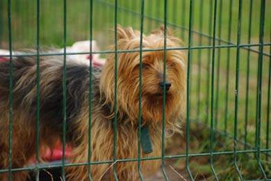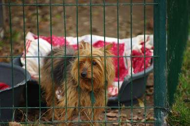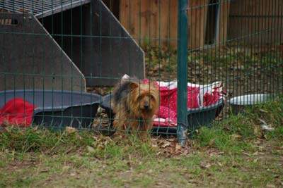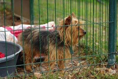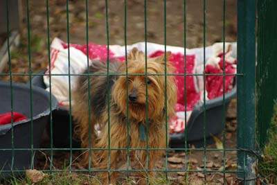Der ca.11 jährige Yorki-Rüde Teddy wurde an einem Baum angebunden aufgefunden.
