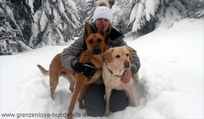 Seit über fünf Monaten wartet der bildhübsche Tek im Tierheim Ebersheim auf seine Menschen. Seine Gassigeherin versucht ihm das Leben dort halbwegs erträglich zu machen. So oft sie es einrichten kann, besucht sie Tek und als vergangene Woche soviel Schnee lag, durfte er zusammen mit ihrer Hündin einen längeren Ausflug machen. Wie man auf den Bildern sieht, hat Tek dies sehr genossen, denn sobald Tek Vertrauen zu einem Menschen gefasst hat, ist er ein anhänglicher und lieber Kerl.