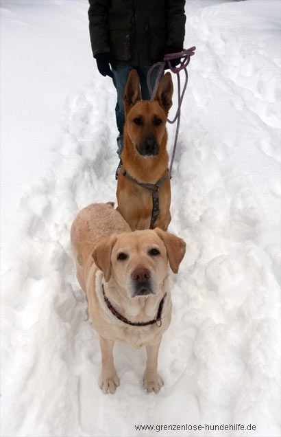 Tek durfte mit seiner Gassigeherin einen Ausflug in den Schnee machen.