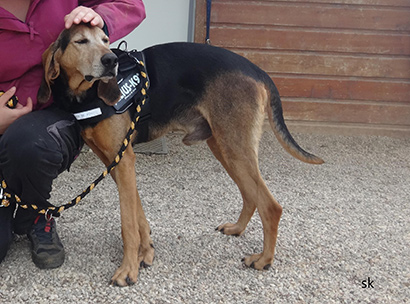 Nun steht er verloren in seinem Zwinger und weint ständig, seine kläglichen Hilferufe zu hören und nichts tun zu können, ist für die Pfleger und für seine Gassigänger sehr schwer.