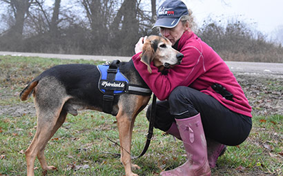 Texas ist ein grosser Schmuser, er drückt sich fest an einen, genießt die Nähe und die Streicheleinheiten.