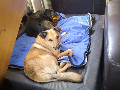 Auch liebt er es, mit anderen Hunden zusammen zu liegen und sich anzukuscheln.