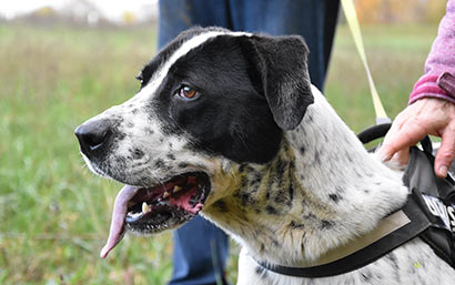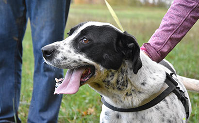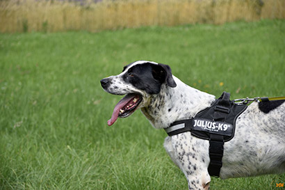 So beim Spazierengehen ist er ist ein ganz freundlicher Hund, beim Spielen wird er allerdings noch wild, kennt die Grenzen nicht, und muss die Regeln erst noch lernen.