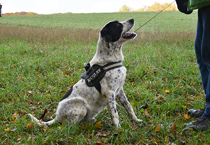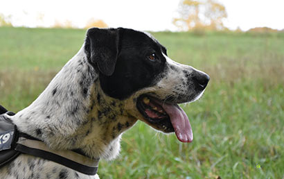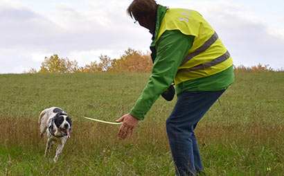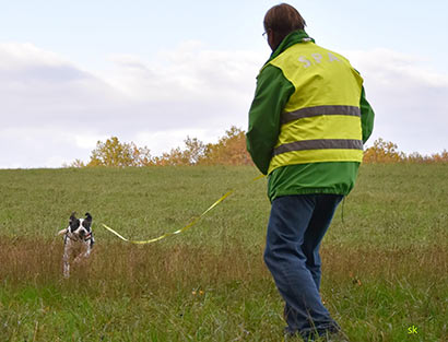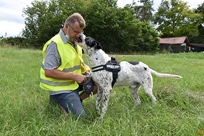Im Wald ist er dann auf der Jagd. Überall wittert er eine Spur und geht ihr hinterher, dauernd will er abbiegen und mit mir in den Wald hineinsausen.