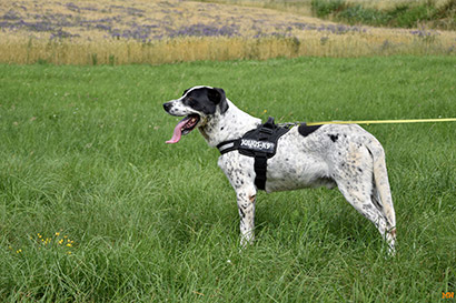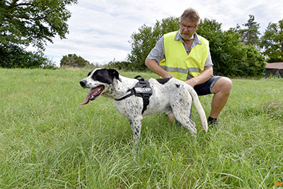 An der Strasse wird es besser, hier wird er ruhiger und langsamer, riecht an allen möglichen Gräsern und Büschen, kann auch mal innehalten.