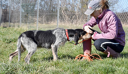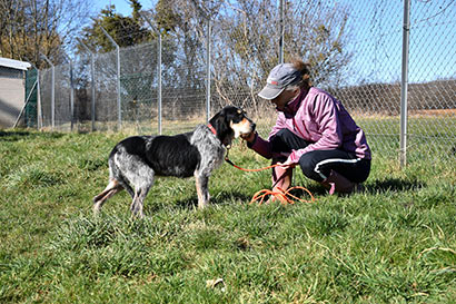 Tiana ist eine bildhübsche, 3jährige Griffon Bleu de Gascogne. Sie wurde vor längerer Zeit in einem Dorf gesichtet, hier hat man dann versucht, sie einzufangen. Nach mehr als 2 Monaten haben es die Dorfbewohner endlich geschafft, die ängstliche Hündin in einem Käfig zu fangen und so ist sie dann im Tierheim gelandet.