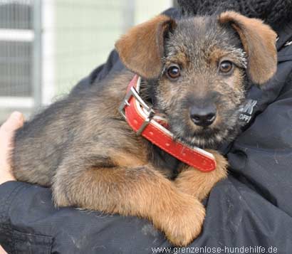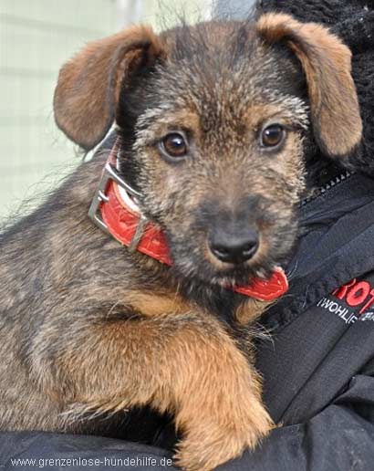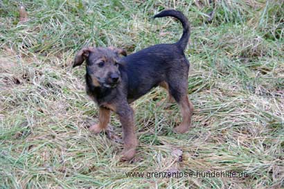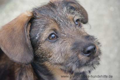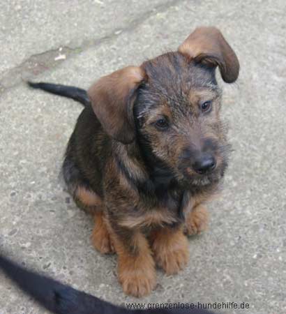 Der aufgeweckte Dackelmix Welpe Timmy wurde lieblos bei kalten Wetter im Tierheim abgegeben.