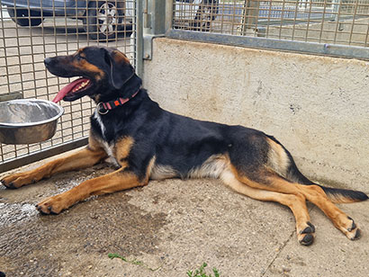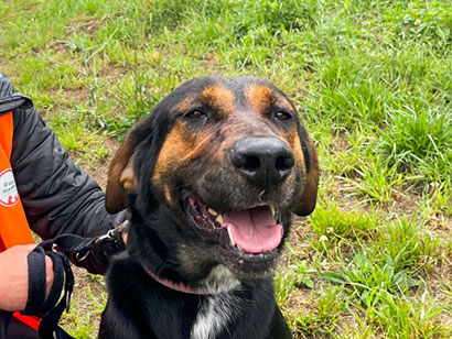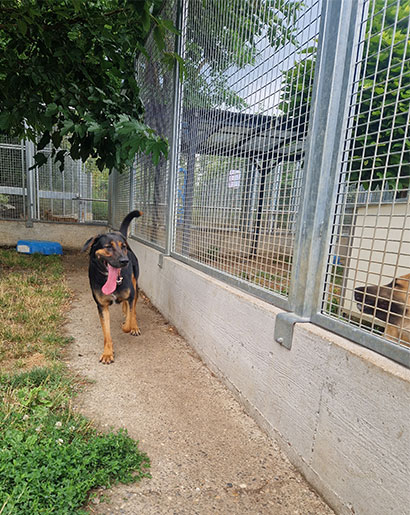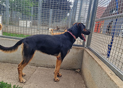 Tina ist eine etwa 4-jährige Beauceron-Schäferhund-Mix-Hündin, die gefunden und ins Tierheim gebracht wurde.