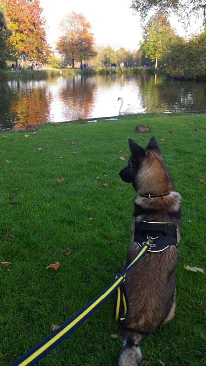 Bei nicht allzugroßer Ablenkung lässt er sich zurückrufen, wenn andere Hunde zum spielen da sind, kann er aber auch schonmal auf und davon sein.