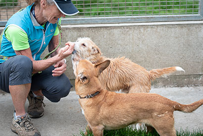 Die 8 jährige, auch sehr freundliche Stella ist ebenfalls verschmust, braucht aber ein wenig Zeit, bis sie sich unbekannten Menschen komplett öffnet. Die beide sind immer noch sehr lebendig und geniessen ihre gemeinsamen Spaziergänge.