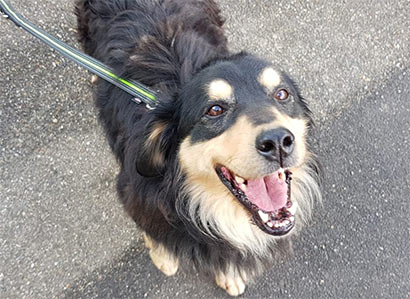 Tomy ist sehr verschmust, lässt sich bürsten, nimmt Leckerlis sanft entgegen und liebt seine Gassigänger.