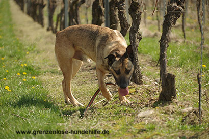 Er hat Fortschritte gemacht bei Hundebegegnungen und geht schon ruhiger an diesen vorbei.