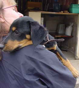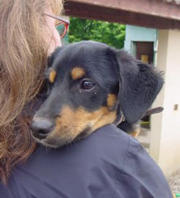 Topsy ist ein sehr junger Pinschermix-Rüde: Geboren im Dezember 2005.