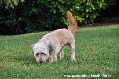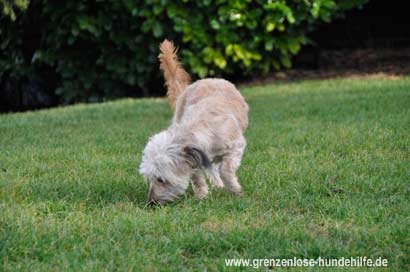 Bei einem Wettbewerb im Schwanzwedeln würde Toufette garantiert aufs Siegerpodest kommen, denn die Kleine begrüßt alle Gassigeher superfreundlich und man kann gar nicht anders, als nochmals eine Extrarunde mit ihr zu drehen und ausgiebig zu schmusen.