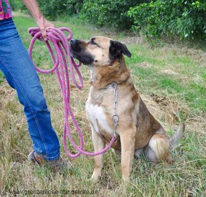 Sie lernt blitzschnell, Sitz und Platz führt sie bereitwillig aus und trotz ihrer Größe ist es angenehm mit ihr Gassi zu gehen.
