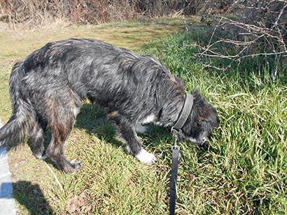 Mittlerweile freut sich Trafalgar riesig, wenn man ihn anleint und aus seinem Zwinger holt. Die Spaziergänge, wie immer etwas stürmisch am Anfang, verlaufen dann reibungslos.