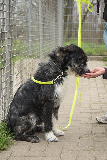 Als ich ihn das erste Mal aus seinem Zwinger holte, duckte er sich und wirkte etwas unsicher.