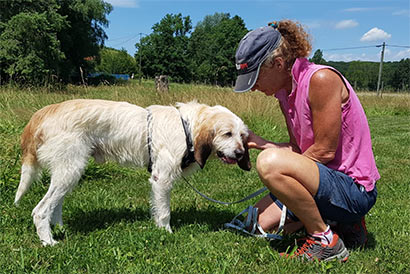 Als wir dann über ein Feld liefen, hat Tragedy den Kontakt zu mir gesucht und dann widmete er sich seinem Lieblingshobby......im Gras schnüffeln.