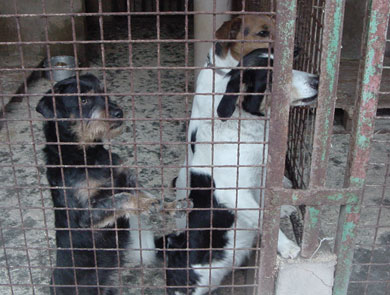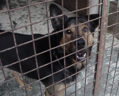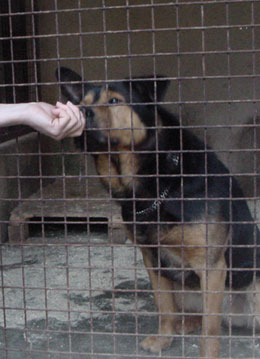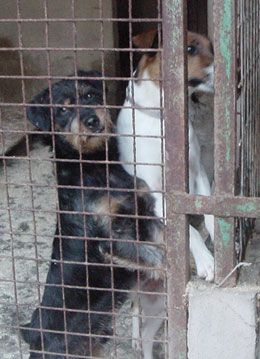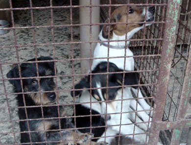aus den Zwingern geholt. Filou, der im Zwinger als nicht verträglich