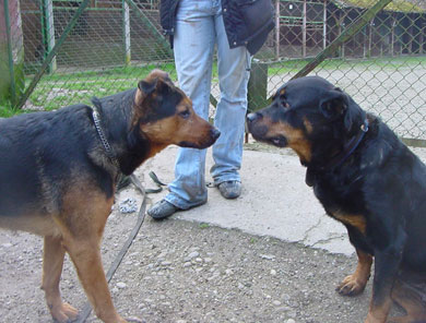 Die Begegnung von Maitika mit Steffies Rottihündin verlief