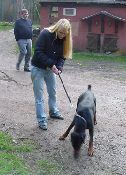 beim Training mit den Liepvrehunden beobachtet und ist mit ihr