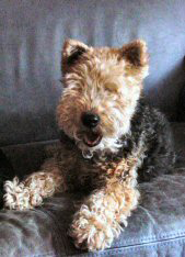 ist eine blinde ca. 13-j. Welshterrier-Hündin.