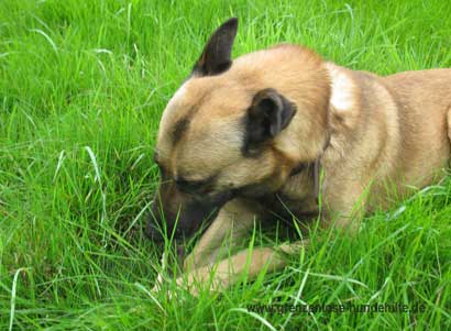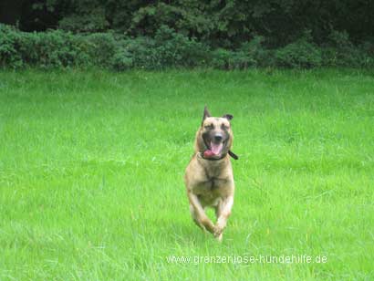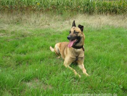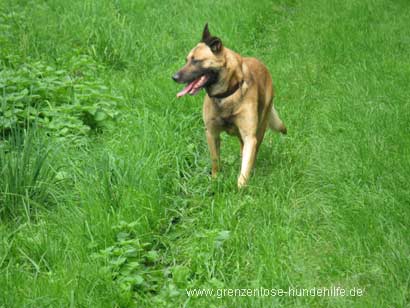Erstaunt bemerkte ich, dass du auf jeden Zuruf deines Namens sofort zurückgekommen bist und auf jedes *assis* sofort ein „Sitz“ folgte. Dankbar nahmst du deine Belohnung entgegen und auch ein paar Streicheleinheiten hast du gerne angenommen. Mit der Zeit war ich ganz hin und weg, auf den kleinsten Zug an der Leine reagiertest du sofort mit Stehenbleiben oder Zurückkommen, auf ein *non* stopptest du sofort mit deiner zu diesem Zeitpunkt ausgeführten Tätigkeit. Entgegenkommende Hunde, Fahrradfahrer, Autos, Jogger oder sogar Inlinefahrer wurden mit keinerlei Aufmerksamkeit deinerseits bedacht und zu diesem Zeitpunkt war mir klar, welche hervorragende Ausbildung du beim Militär erhalten hast.