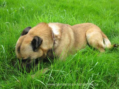 Draussen aber hat er für solche zärtlichen Momente keine Zeit. Er ARBEITET. Die Nase am Boden, die Ohren auf der Lauer Er ist ständig auf der Hut. Jedes Geräusch, jeder Geruch erweckt seine Sinne. Er inspiziert ständig seine Umgebung. So hat er es ja gelernt.