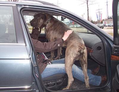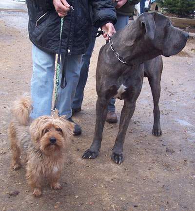 Tyson, der Riese, ist etwas unsicher. Bewegungen