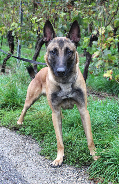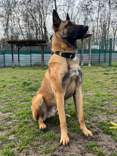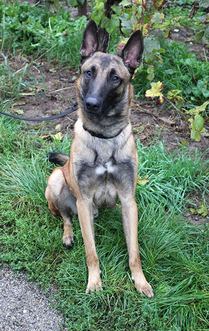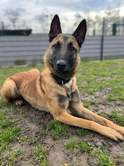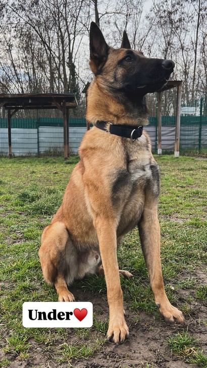 Der junge kastrierte Malinois Rüde Under wurde aufgrund von Nachbarschaftsstreit im Tierheim abgegeben, da er bellte, wenn er alleine bleiben musste.