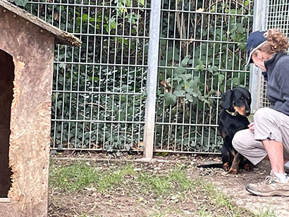 Mit anderen Hunden scheint er verträglich zu sein, ob Katzen zu seinen Freuden gehören muss noch getestet werden.