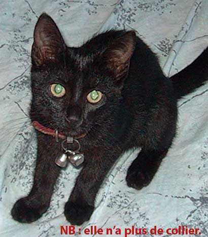 Cachou, chat femelle, de couleur noire, âgée de 8 ans.