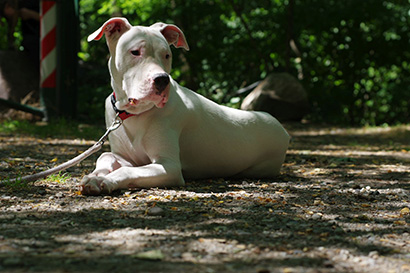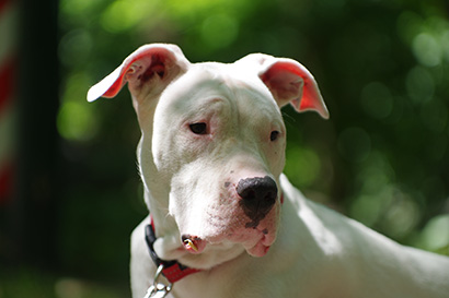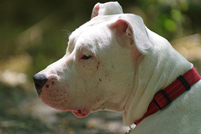 Der taube, ca. 6 Monate junge, sehr freundliche Dogo Argentino Rüde Viking wurde auf der Strasse dem erstbesten Passanten geschenkt. Überrumpelt nahm dieser Viking mit nach Hause.