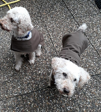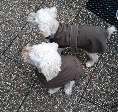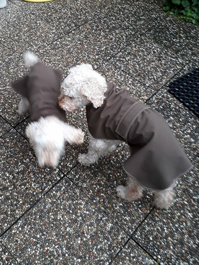 Lieben Dank an Monika und Josef R. für die in Handarbeit genähten Hundemäntel für Voice und Violett.