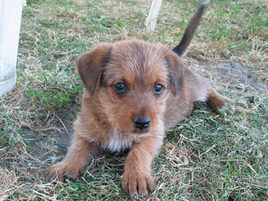 Rüde, größer, Terrierfell, schwarz/braun