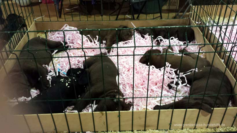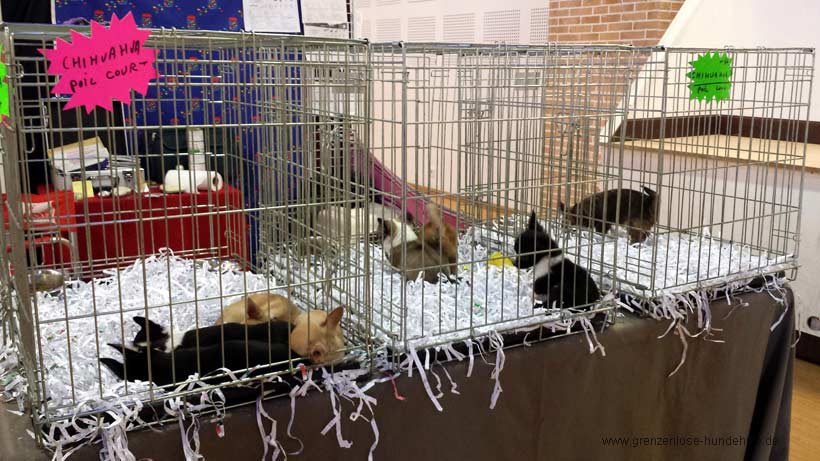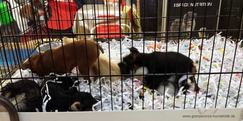 Es war schrecklich, diese kleinen hilflosen Hundekinder in diesen Käfigen, diese Menschen, die da hin gehen und sich einfach so ein Lebewesen kaufen ohne sich Gedanken zu machen ob diese Rasse überhaupt zu Ihnen und Ihrem Leben passt :-(. Ich konnte es nicht glauben, wieviele solcher Verträge geschrieben wurden und wieviele arme Welpen aus der Halle getragen wurden, in gerade mal ca. 30 Minuten, in denen ich es da drin ausgehalten habe. Ich musste da raus, schnell, ich konnte das Leid und die Gedanken an die Zukunft der Welpen nicht mehr ertragen. Niemand berät über die Eigenheiten der Rassen, niemand macht sich Gedanken wohin die Welpen verkauft werden...