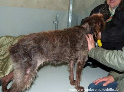 Das Tierheimpersonal hat sich sehr liebevoll um die Hündin gekümmert und Sie zwischenzeitlich etwas aufpäppeln können.