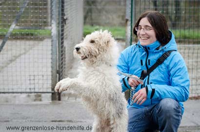 Willie ist ein lustiger, freundlicher Kerl. Als man Ihn fand war er ein sehr verwahrloster Hund der dringend zum Friseur mußte..