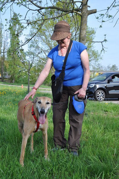 Wish geht ruhig und angenehm an der Leine und ist sehr sehr lieb. Mit anderen Hunden ist sie nur bedingt verträglich, d.h. wenn diese zu aufdringlich werden, zeigt sie, dass ihr das Gewusel und die Nähe zu viel wird und sie ihre Ruhe will. (was man in diesem Alter ja durchaus nachvollziehen kann :-)