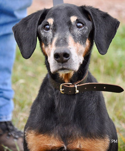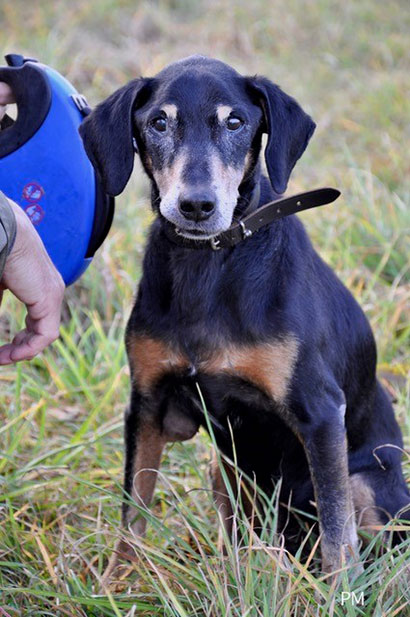Rasse: eingetragen als Dobermann-Mix (jedoch recht klein - SH ca. 45 cm)