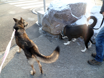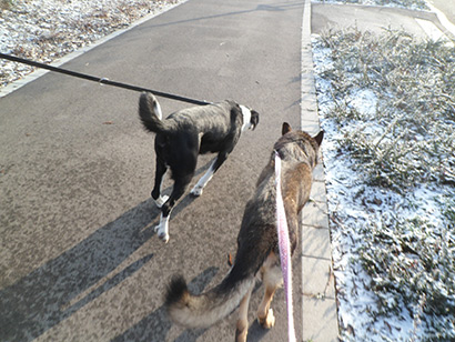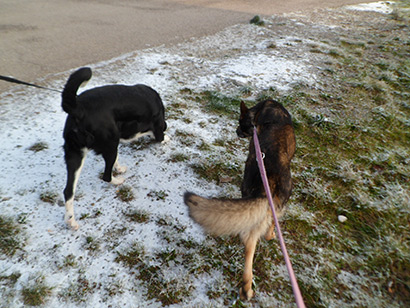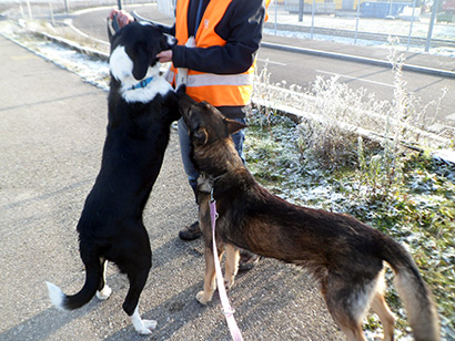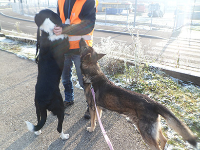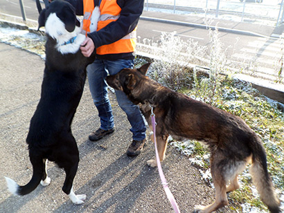 Der souveräne You war ein perfekter Begleiter für die schüchterne Hündin Belle, die momentan in Pension ist.