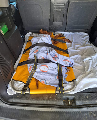 Wir bangen um den Rüden und hoffen, dass er die Fahrt gut übersteht und ihm in der Klinik geholfen werden kann.